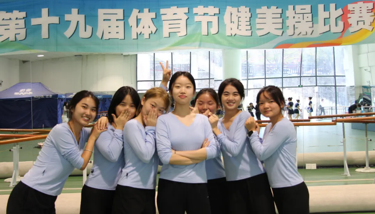 李家美、高雪、邵凡真、丁思雨、袁琳、潘甜、杨尚巧、刘嘉威、陈艳、冯若云获得中国大学初级校园健美操第四名