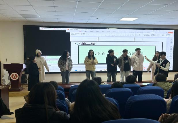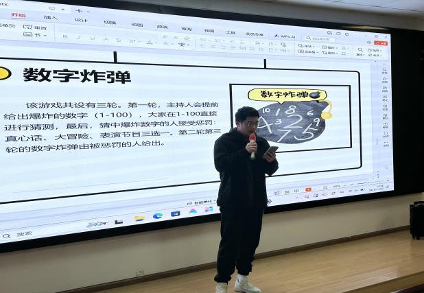 活动现场氛围热烈融洽,互动环节亮点十足。“数字炸弹”游戏中,大家屏息猜测、灵活应变,惊险“避坑”与精准命中屡屡引爆全场欢呼;“含雨歌词接龙”环节,同学们踊跃抢答、妙语连珠,各类歌曲信手拈来,尽显音乐积淀。唱歌环节将氛围推向高潮,《如愿》《晴天》《暖暖》等合唱引发全场共鸣,《我们的明天》独唱深情动人。整场活动在旋律与欢笑中拉近彼此距离,也定格下了经院学子青春同行的美好瞬间。