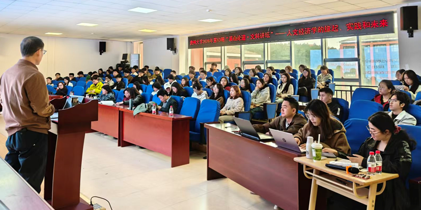2026年4月1日,贵州大学2026年第13期“溪山论道·文科讲坛”暨经济学院第131期黔山经济大讲堂在崇文楼532报告厅成功举办。本次讲座特邀山东大学魏建教授做主题为“人文经济学的缘起、实践和未来”的专题讲座。
